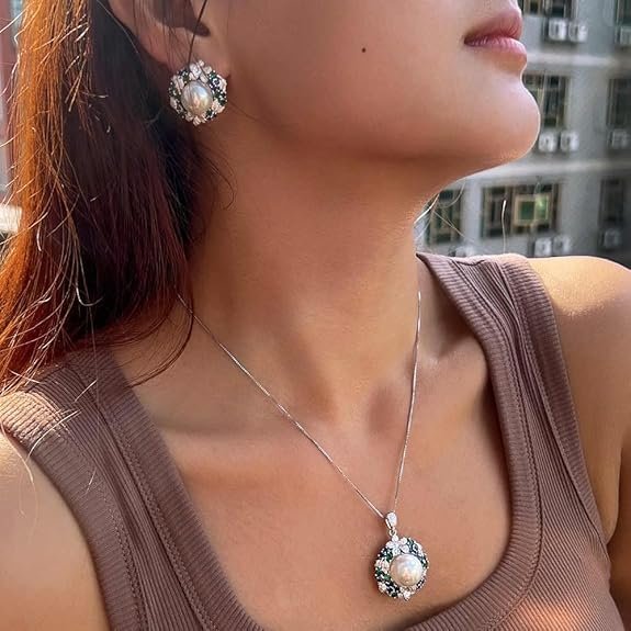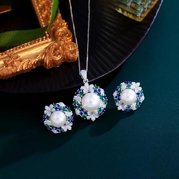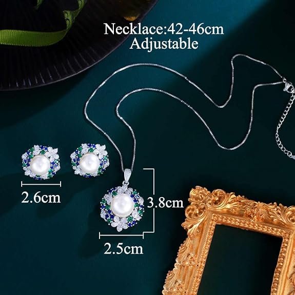 Be the first to review “Elegant Flower Design Blue Green Cubic Zirconia Pearl Pendant and Earrings Set” Cancel reply