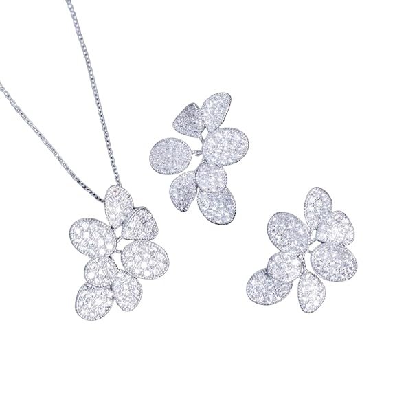 - Dazzling Leaf-Shaped Design: Elegant big delicate leaf pendant and matching earrings crafted with sparkling white cubic zirconia for a romantic, nature-inspired look.